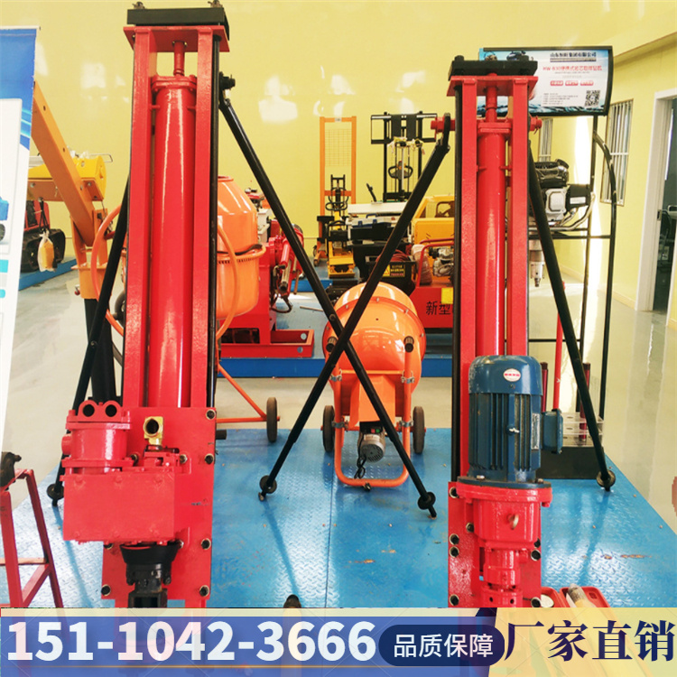 陕西宝鸡 护坡电动潜孔钻机 日照KQZ-100凿岩机SKB70/100/120型潜孔钻机是我厂自行设计的一种新型、、半机械化的先进凿岩设备。具有结构简单、实用轻便等特点。主要用于井下采矿场接杆钻凿上向扇形或环形中的深炮孔,亦可用于井下空场的放顶和巷道锚杆支护以及需要钻凿类似上述炮孔的石方工程。