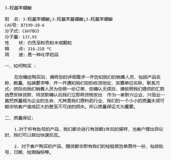 CAS号:87199-18-6 3-羟基苯硼酸 兴恒业科技 中间体