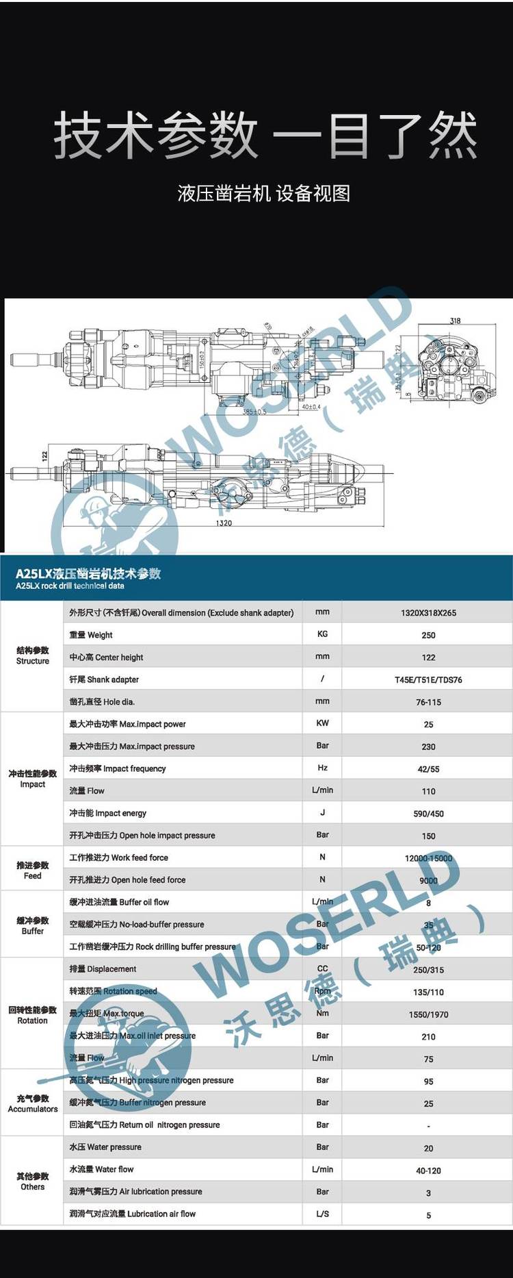 沃思德液压凿岩机25KW地下非媒矿山中深孔采矿带反打配件