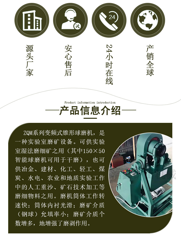 化验室智能锥形球磨机 ZQM160*60 实验室磨矿机 自动卸料可定时