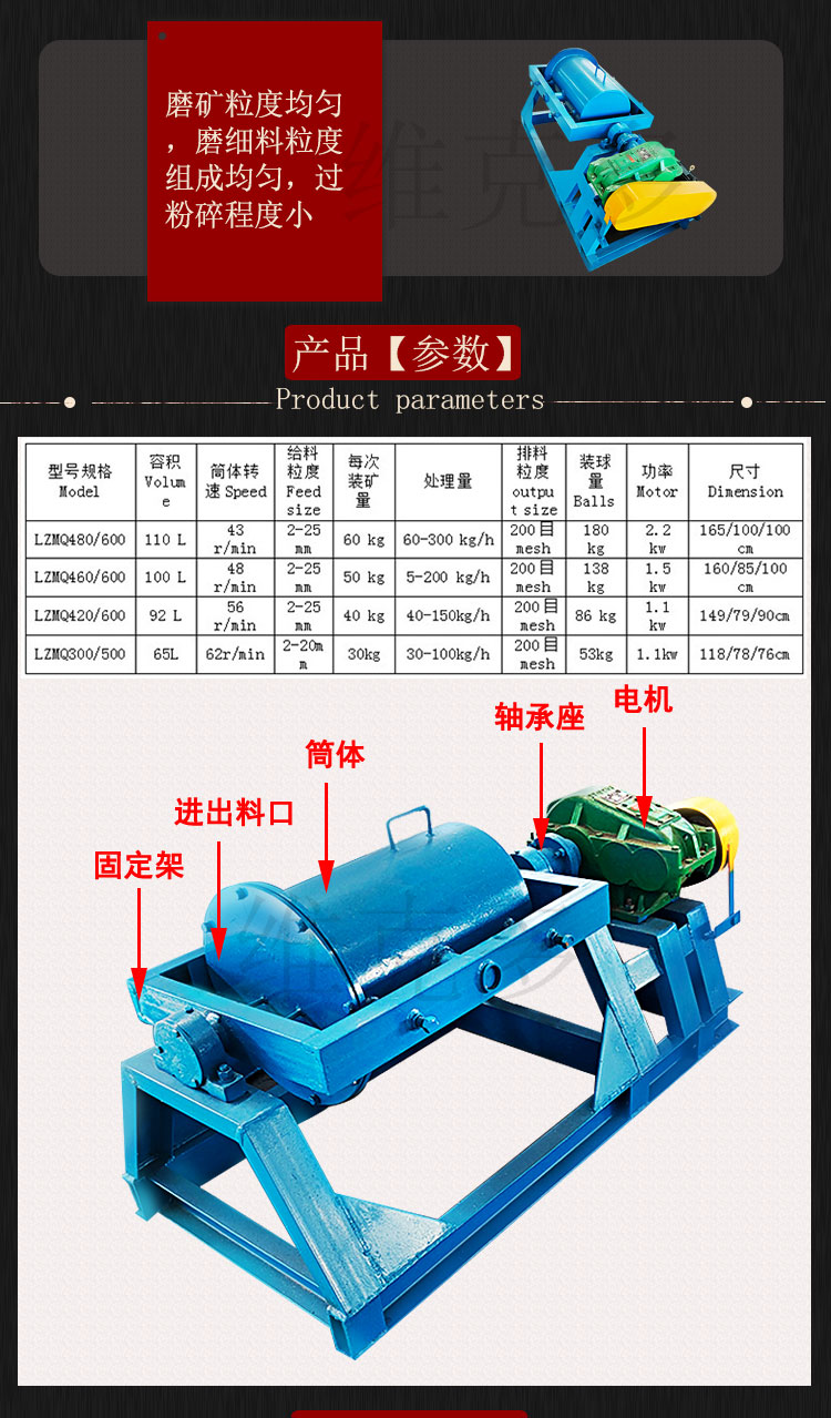 QM-φ400*600筒形球磨机 实验室小型筒型磨矿机 球磨混汞两用设备