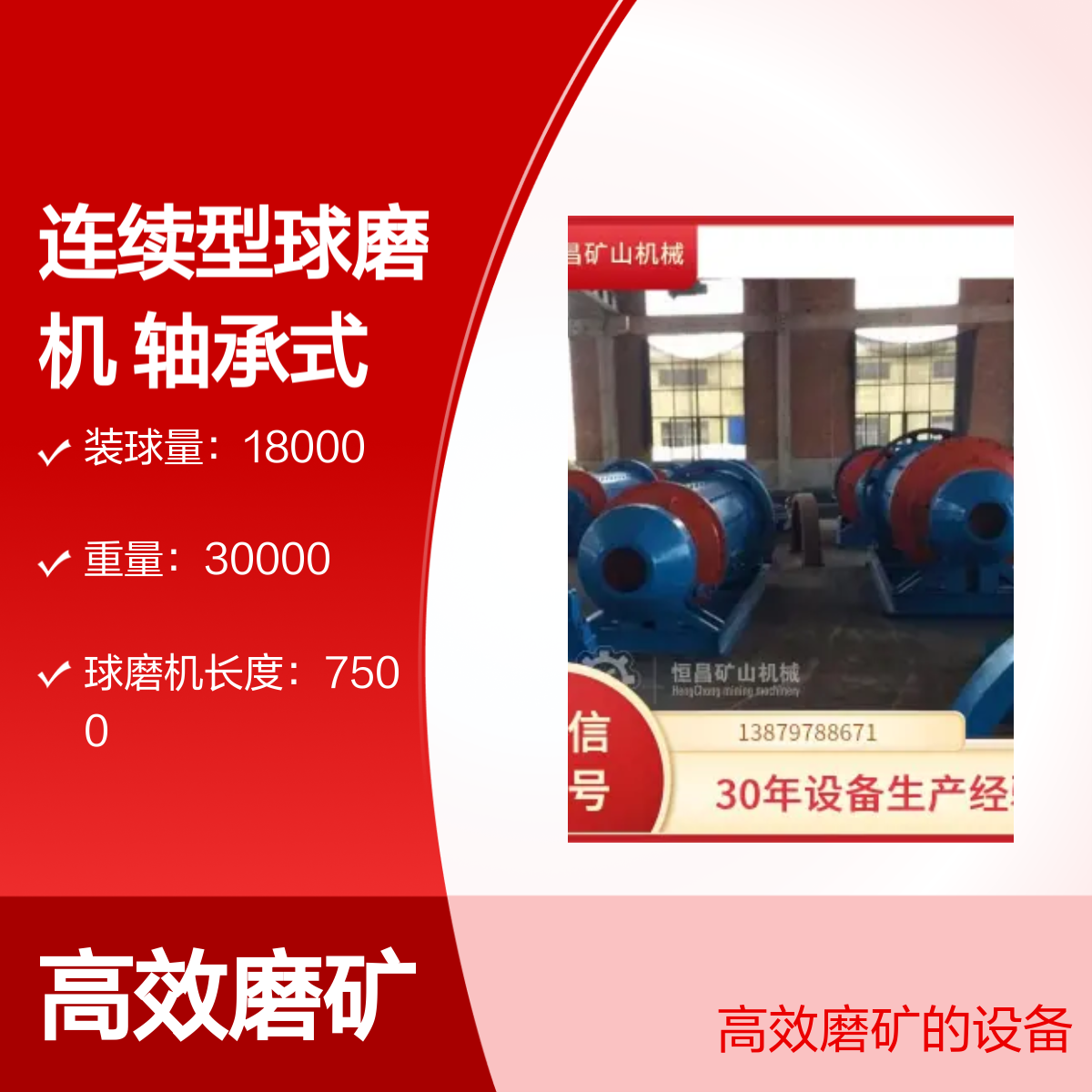 连续型球磨机 轴承式 改善流动性 赤铁矿磨矿粉设备 恒昌矿山机器