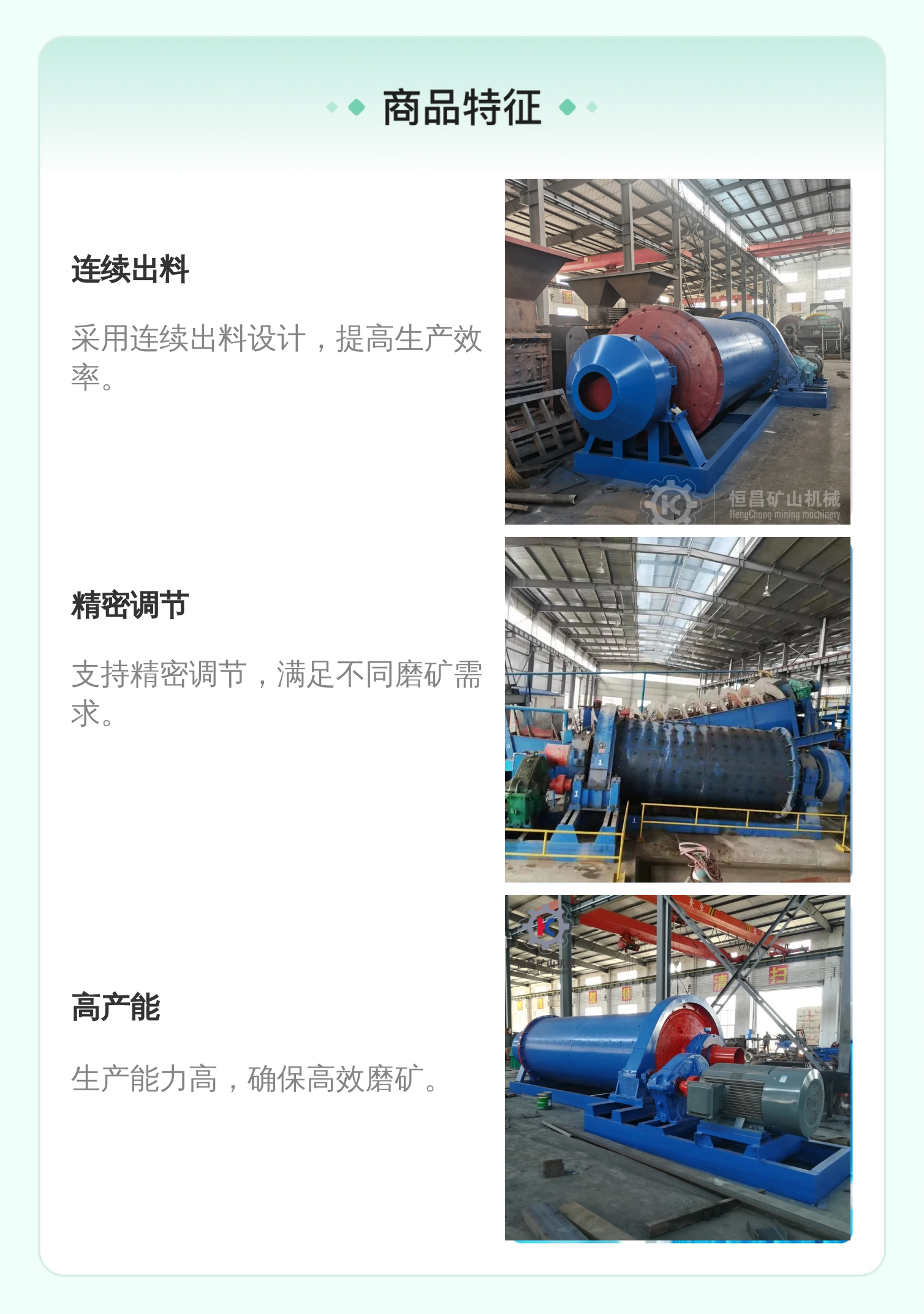 干式球磨机 连续出料型 精密调节 金矿磨矿粉生产线设备 恒昌矿山机器