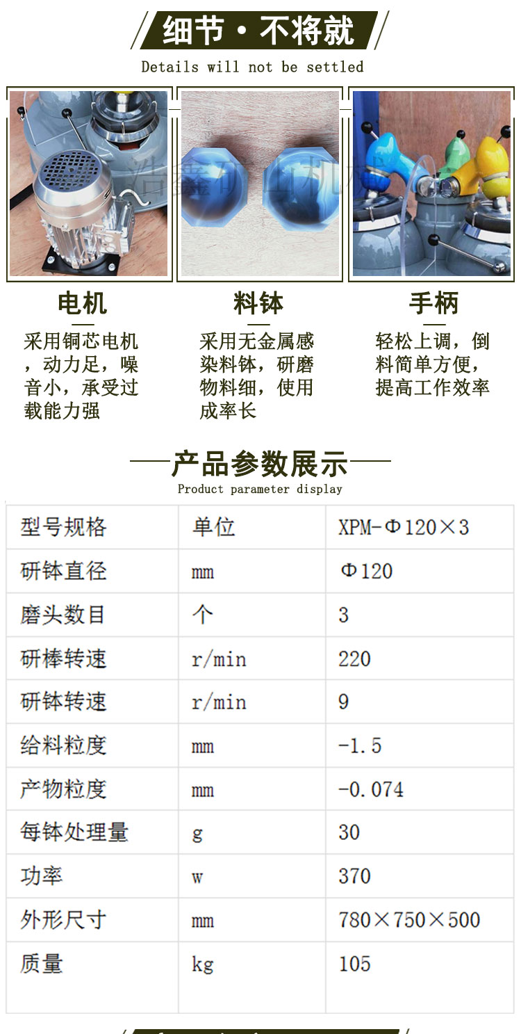 试验用三头研磨机 XPM120*3 玛瑙研钵磨粉机 石英砂矿石粉设备