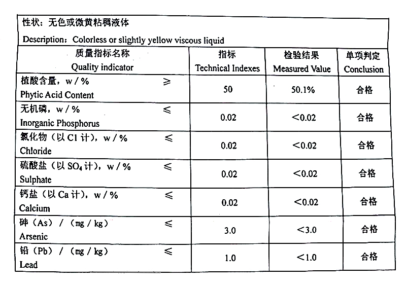 产品类型 | 植酸 |