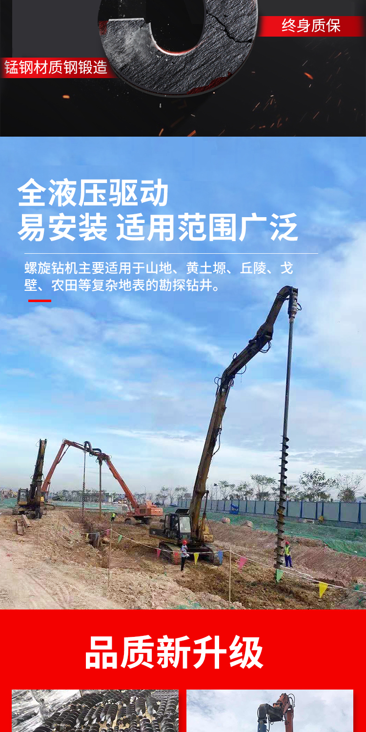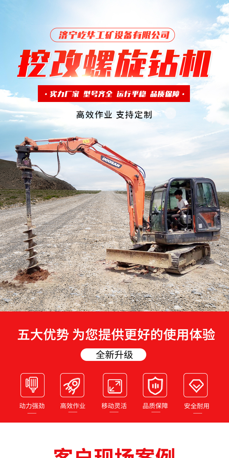 屹华 小型液压 挖掘机改螺旋钻机 地基打桩电线杆钻孔机 YH-60