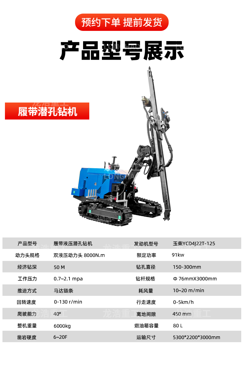 履带液压潜孔钻机 山坡隧道钻孔机 多角度打孔机