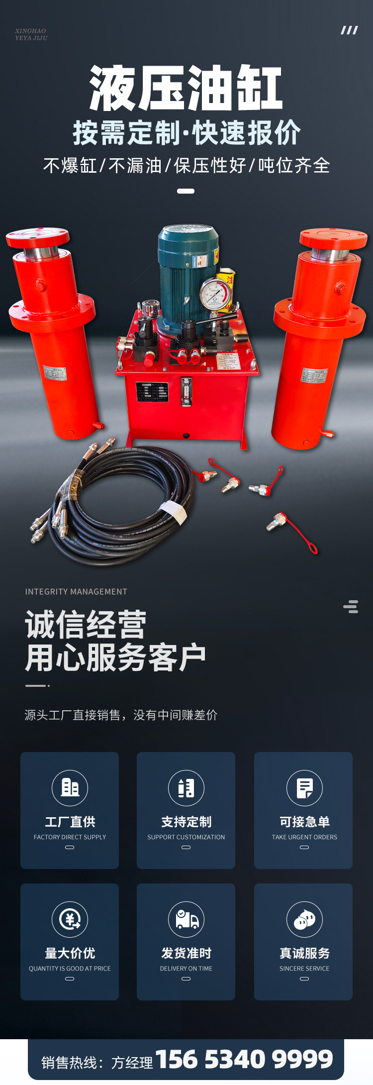 兴昊 液压油缸 行程稳定 自动双作用推动千斤顶