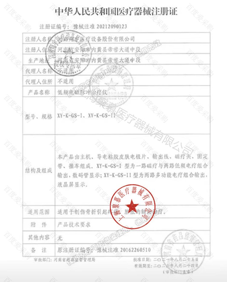 本产品由主机、导电粘胶皮肤电极片、输出线、磁疗头、固定带、推车组成。XY-K-GS-I型为一路磁疗与两路低频电疗组合输出,数码管显示;XY-K-GS-II型为两路多功能电疗组合输出,液晶屏显示。
