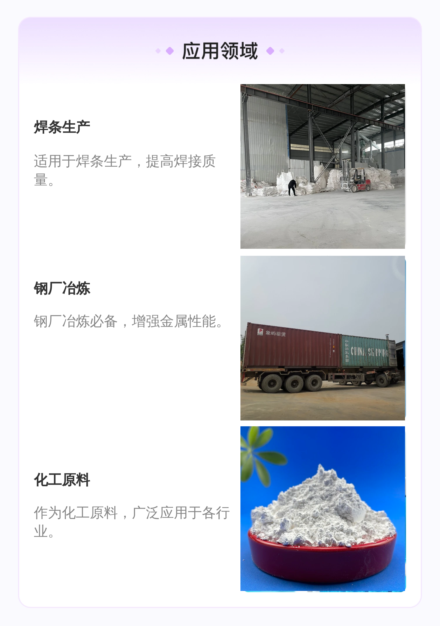 用途范围 | 焊条、钢厂等 |