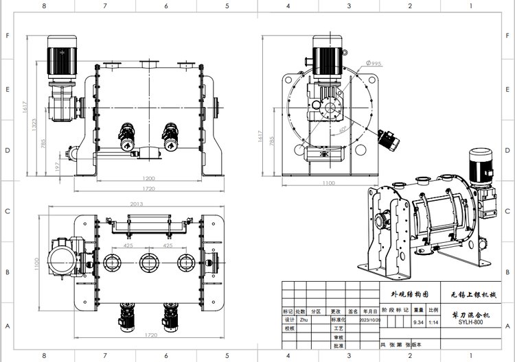 上银机械 犁刀混合机 锂电材料 食品 医药 化工搅拌机 干湿两用
