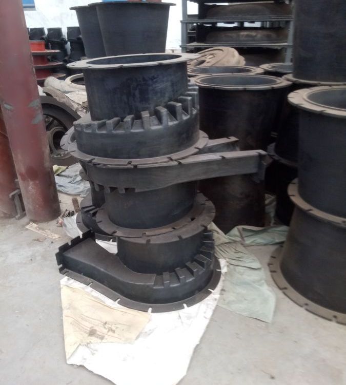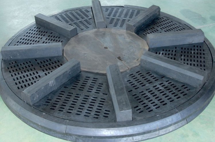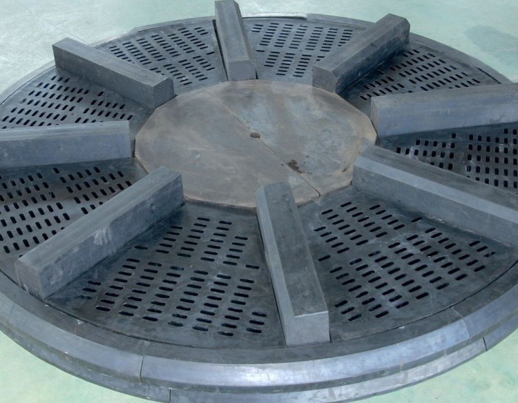 将小方块耐磨陶瓷片镶嵌在缓冲橡胶内,构成方形耐磨橡胶衬板,再使用高强度有机粘合剂或螺栓将衬板安装在设备的内壳钢板上,形成坚固且有缓冲力的防磨层。