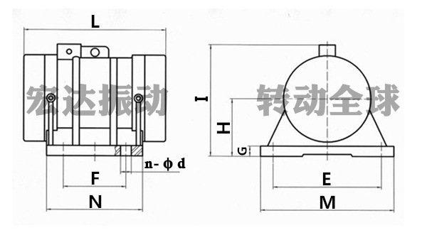 型号 | 激振力 | 功率 (kw) | 电流(A) | 振频(r/min) | 安装尺寸 | 重量 (Kg) | |||||||