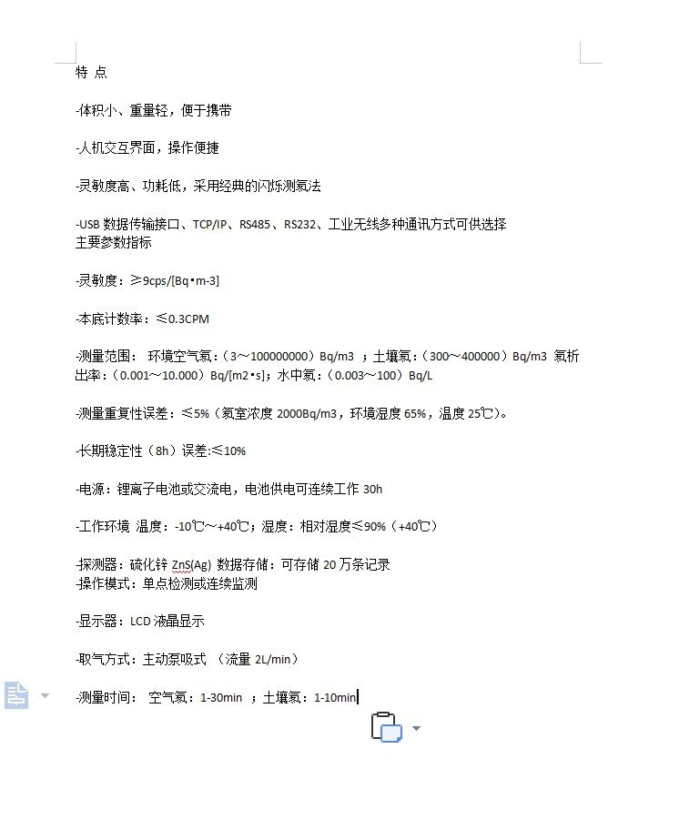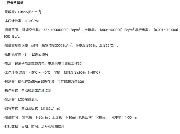 灵敏度 | ≥9cps/[Bq•m-3] |
