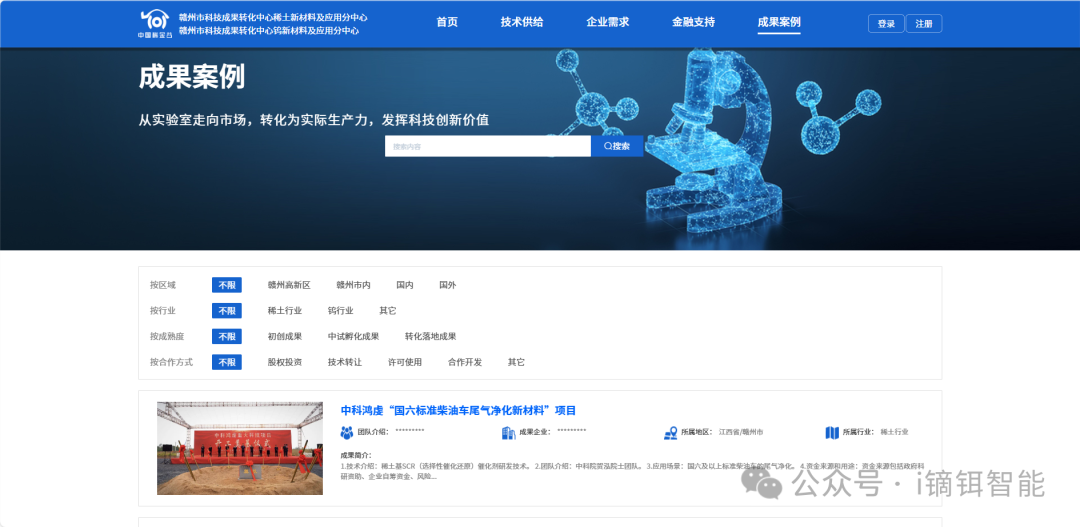 镝铒智能通过整合稀土、钨行业的技术资源、数据资源和金融资源,构建了一个集技术供给、企业需求、金融支持等多功能于一体的综合性平台。该平台不仅提供了丰富的稀土行业技术信息和科研成果,还通过智能匹配系统,实现了技术供给和企业需求的精准对接。同时,平台还与金融机构合作,为科技成果转化提供了充足的资金支持,降低了企业的融资门槛和融资成本。