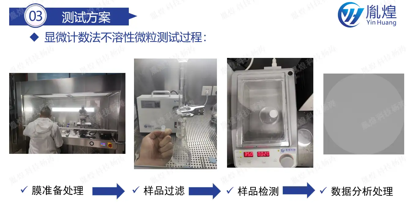 根据中国药典测试要求,显微计数法不溶性微粒检查的测试过程如下: