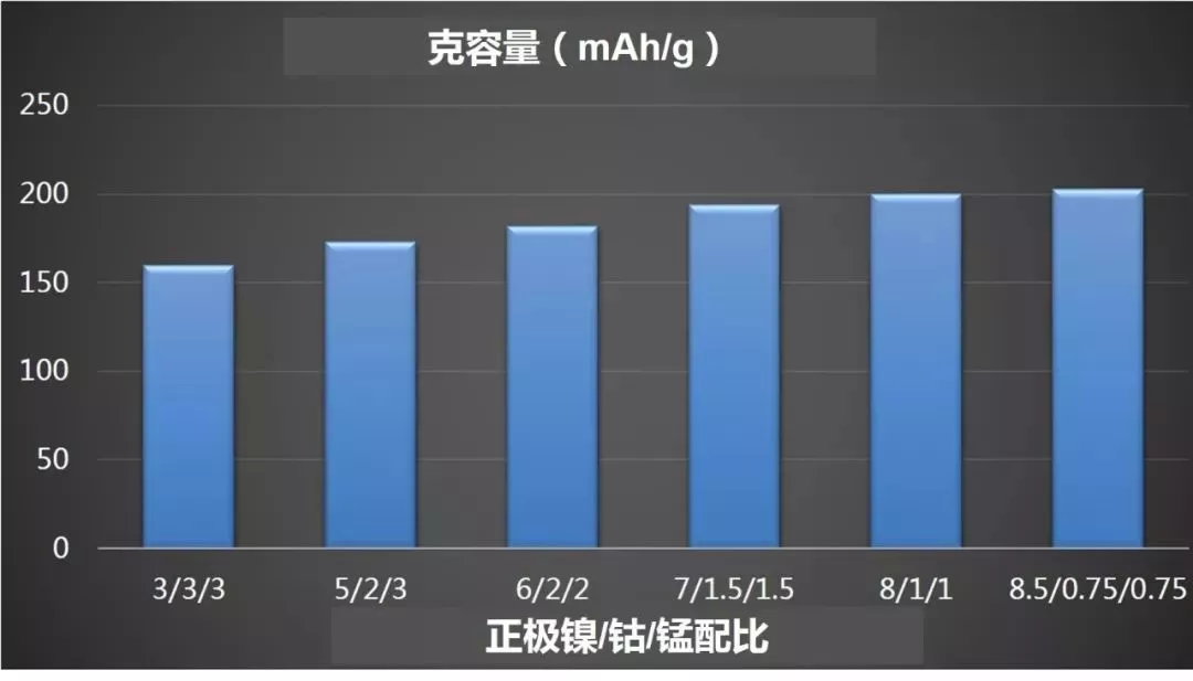 三元材料通指镍钴锰酸锂氧化物大家族,我们可以通过改变镍、钴、锰这三种元素的比例来改变电池的性能。