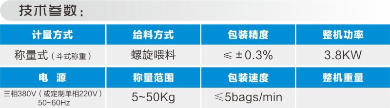该半自动BZ-FL50/D型定量包装机能自动完成计量、夹袋、充填、缝包、传送等工作。适用于包装那些易流动或流动性差的粉粒状物料。