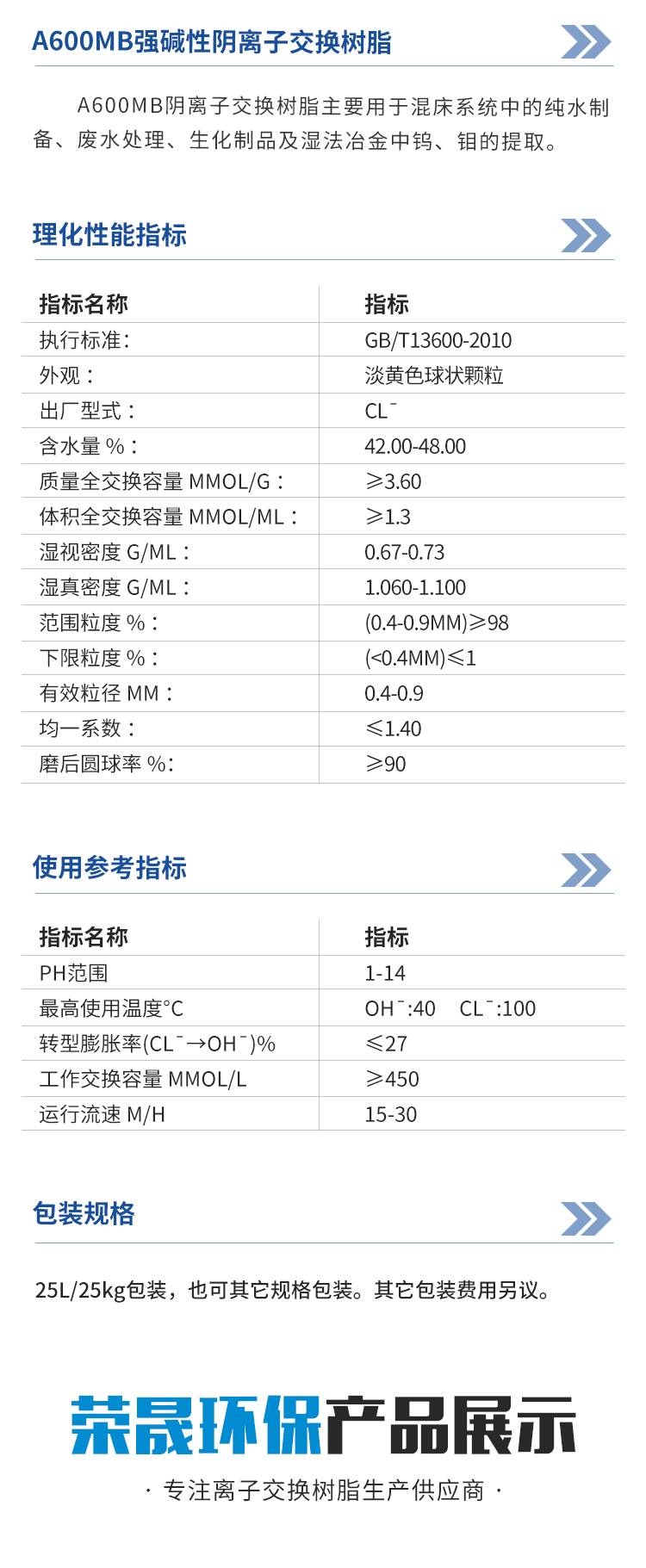 A600MB强碱性阴离子交换树脂 废水污水处理 金属提取