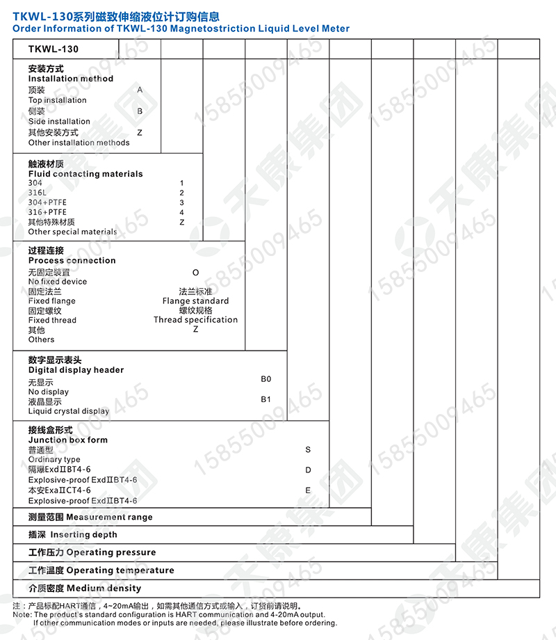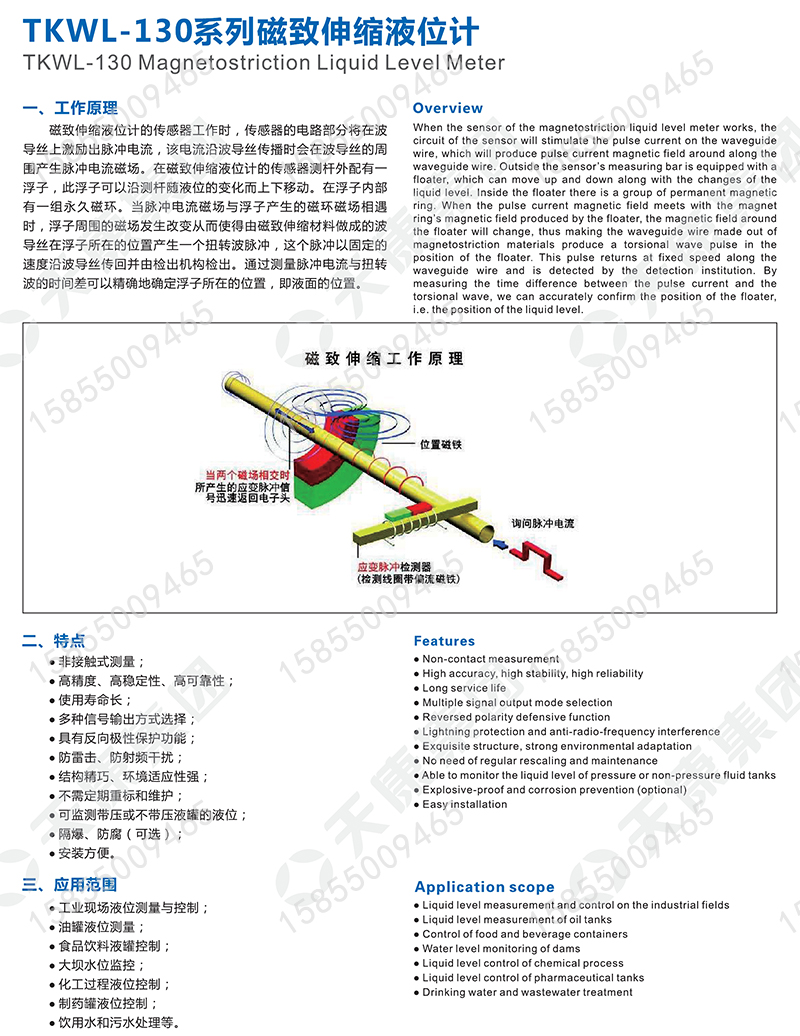 天康磁致伸缩液位计浮球液位传感器高精度杆式控制仪4-20mA