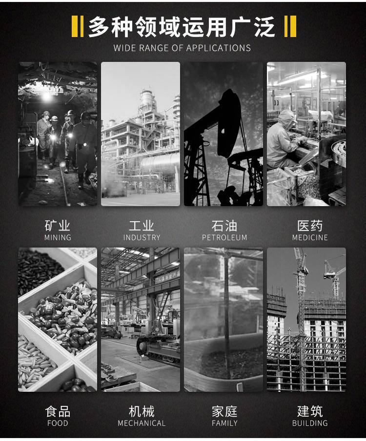 用途:用于矿业、石油、化工、食品、医药、机械制造等行业。