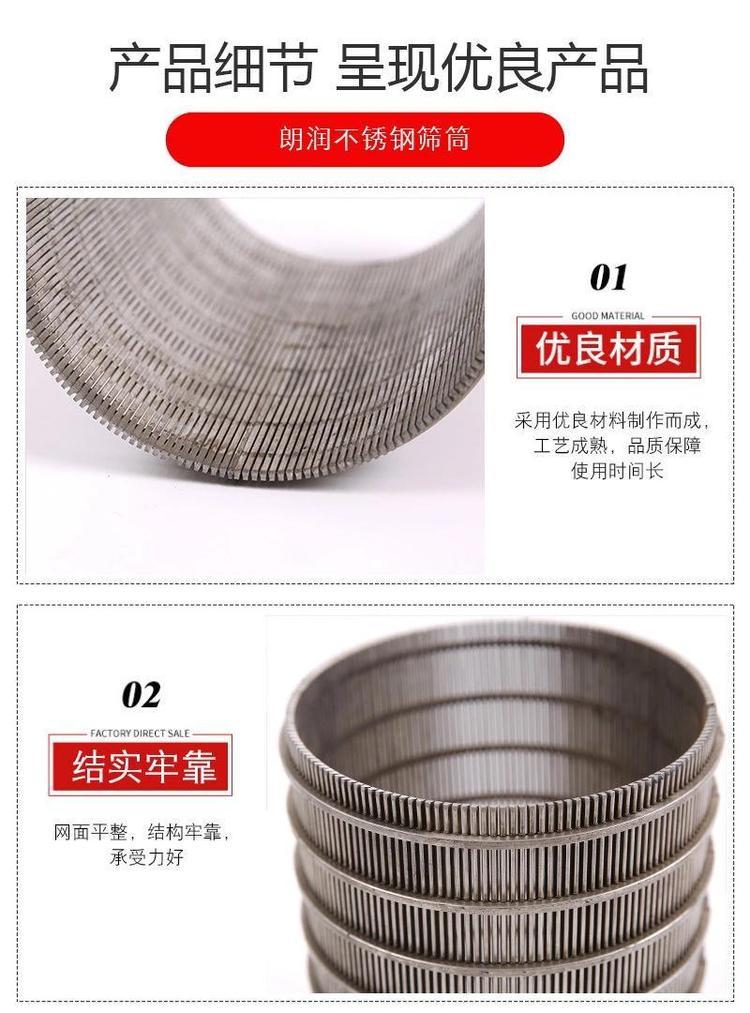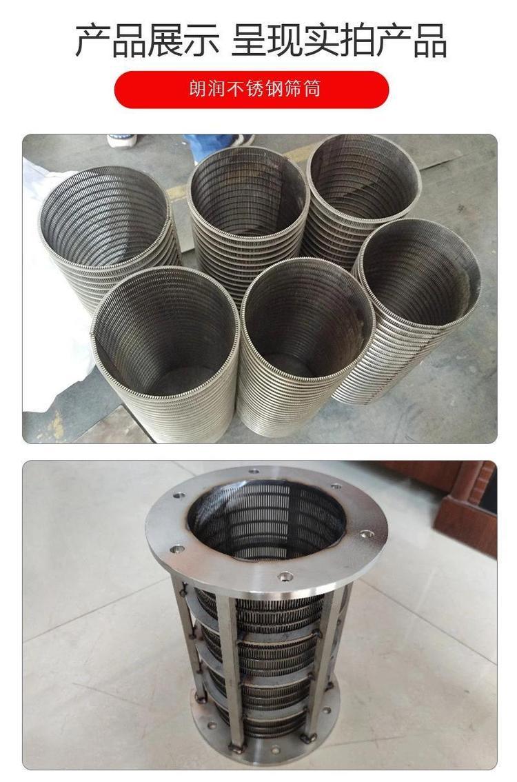 不锈钢焊接式条缝筛是由支撑条和筛条两部分构成。支撑条可以是圆丝也可以是三角形丝或梯形丝,筛条是三角形丝(v型丝),缝隙尺寸精确,过滤精度高;具有结构坚固,耐高温,耐腐蚀,机械性能好,使用寿命长,安全可靠等特点。楔形丝滤筒是由绕条缠绕托条焊接而成,它具有很高的强度、刚度和承载能力,可以做成各种形状的刚性的筛分过滤装置。本产品用先进的熔焊工艺加工而成,条缝筛面具有筛分效率高,抗震抗拉能力强,维护要求低,使用寿命长的优点。