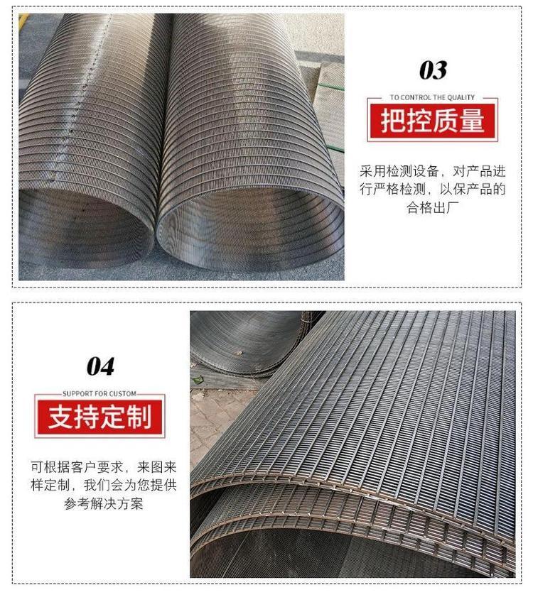 材质:304、316、316L、321、进口高强耐磨不锈钢楔形丝。