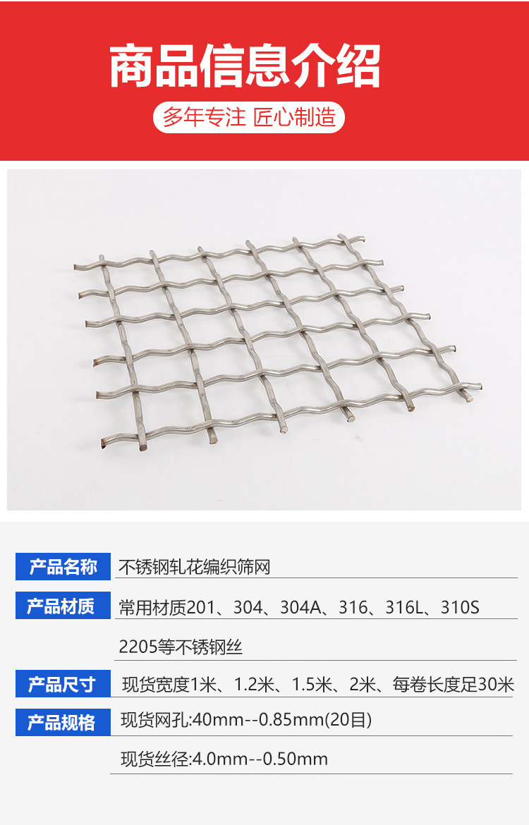 亿阔304不锈钢筛网过滤网轧花网316化工用砂石振动筛丝网可定制