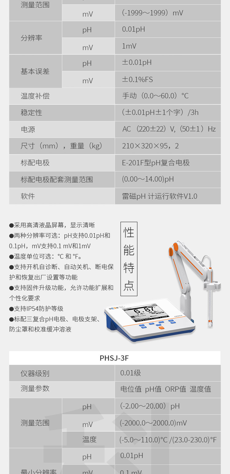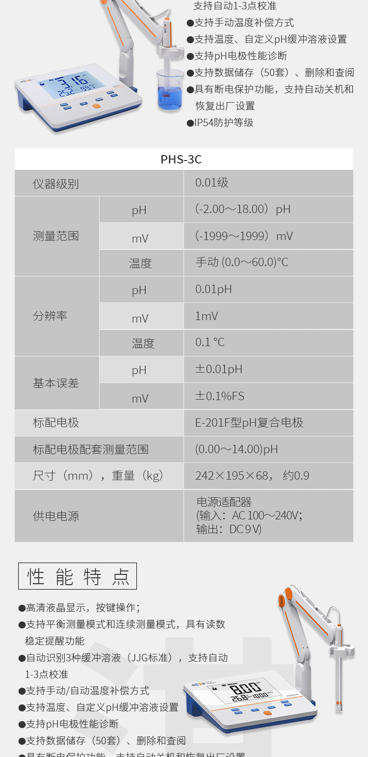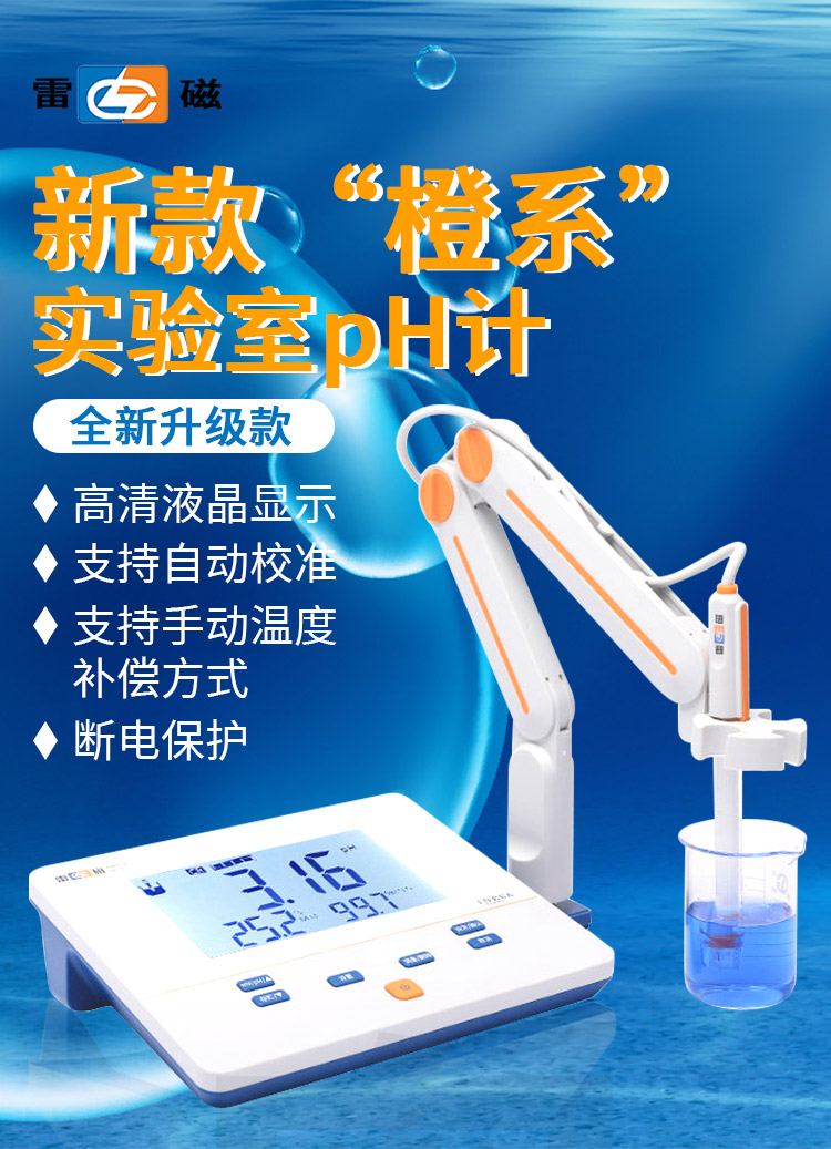 雷磁PH计 台式便携式酸度计phs-3c大屏数显 实验室支持自动温补