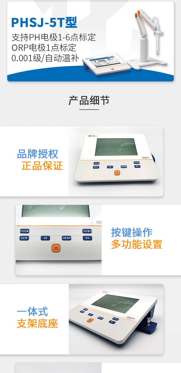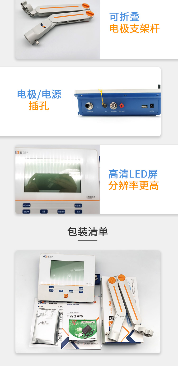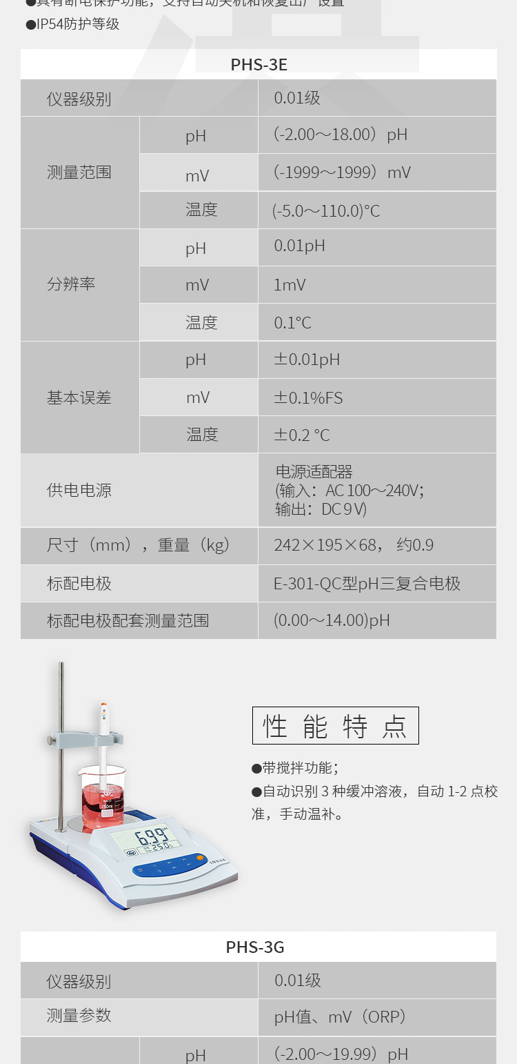 雷磁PH计 台式便携式酸度计phs-3c大屏数显 实验室支持自动温补