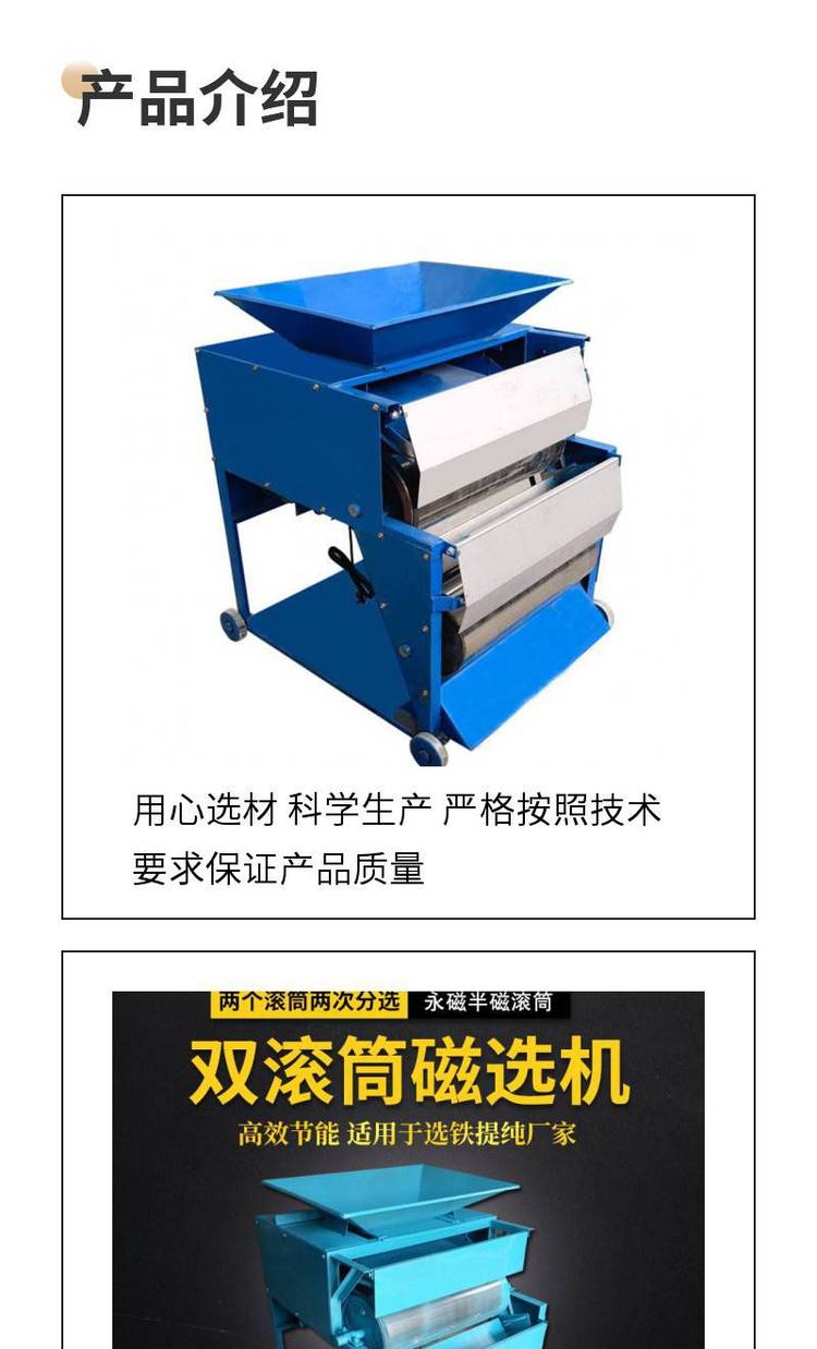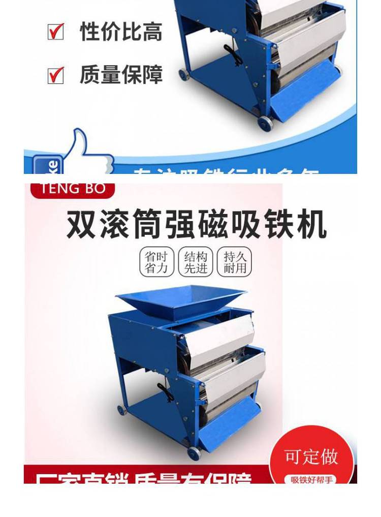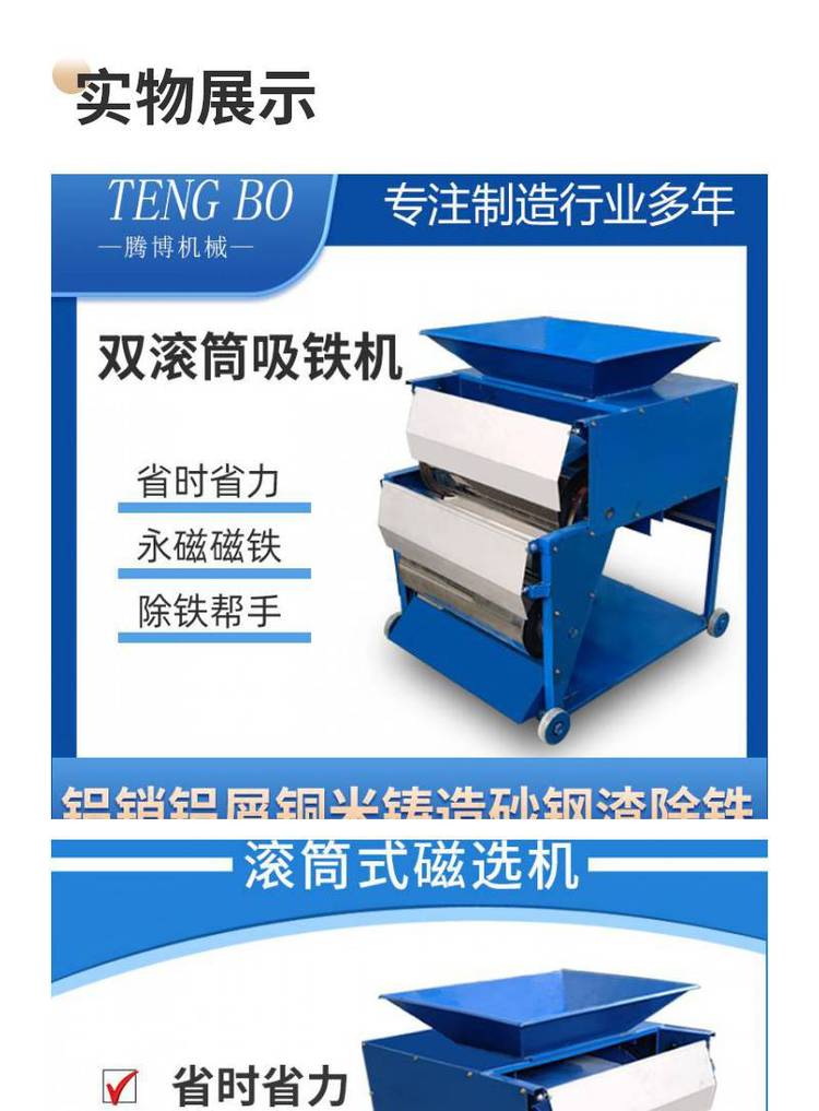 双滚筒强磁磁选机 自动脱落 除杂迅速 铝铁分离机 寿命长