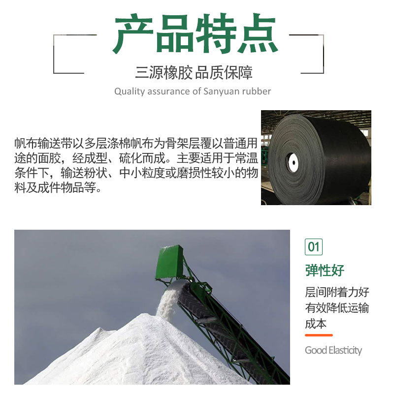 帆布输送带 橡胶皮带 常规挡边耐磨传送带 环形工业平皮带