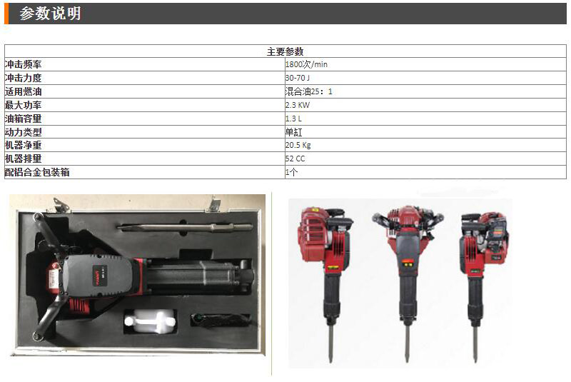 消防救援手持式钻孔机矿石开采红鹰款凿岩机BH2300内燃式破镐
