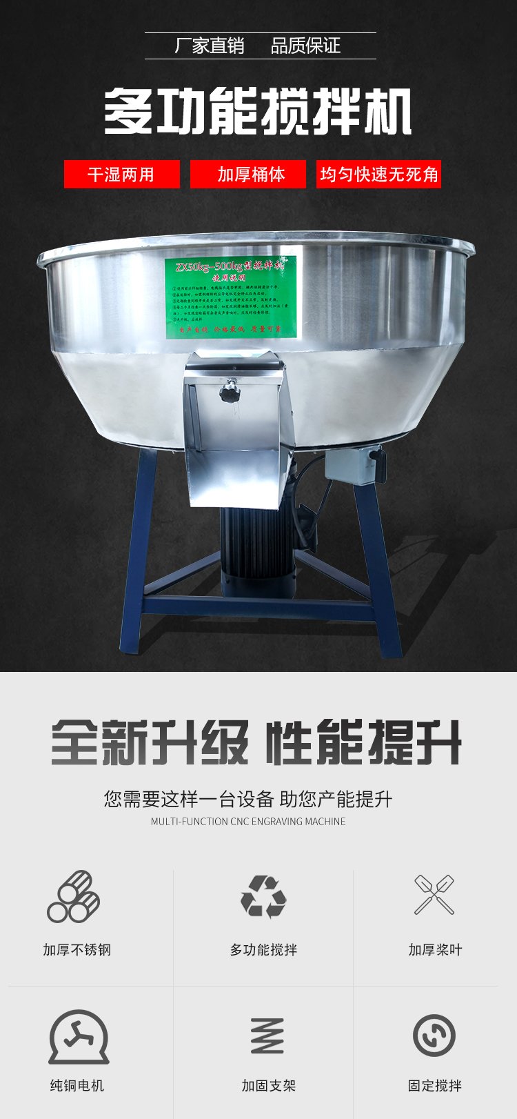 加厚饲料搅拌机塑料颗粒粉末种子养殖场家用小型拌料机干湿两用