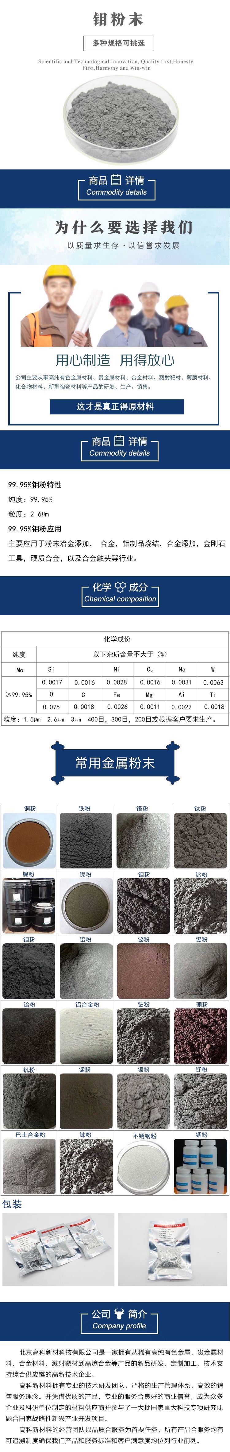 高科新材 稀土合金钼粉末 微米钼粉末 钼粉末 按需定制