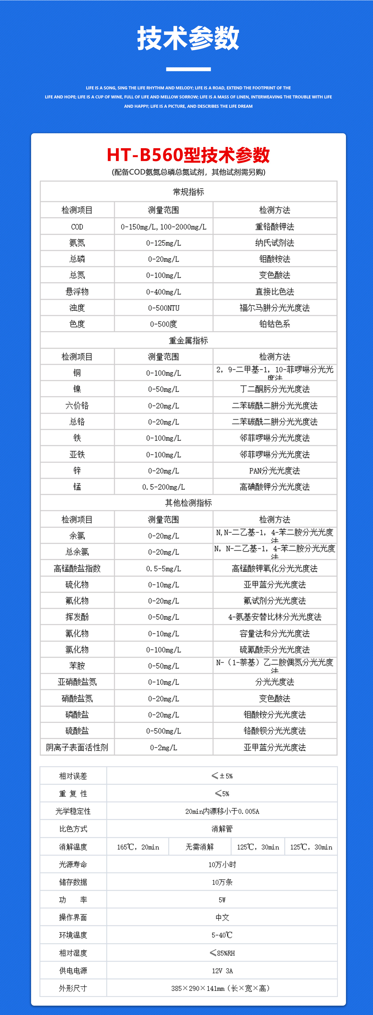 精诚华泰 多参数水质分析仪 HT-B560 COD氨氮总磷总氮快速测定仪