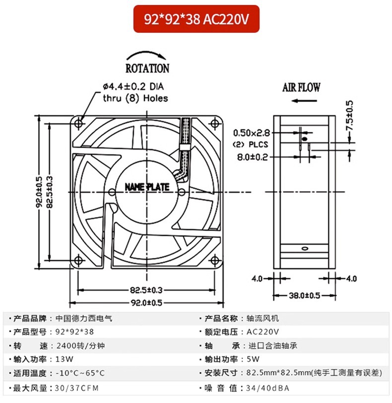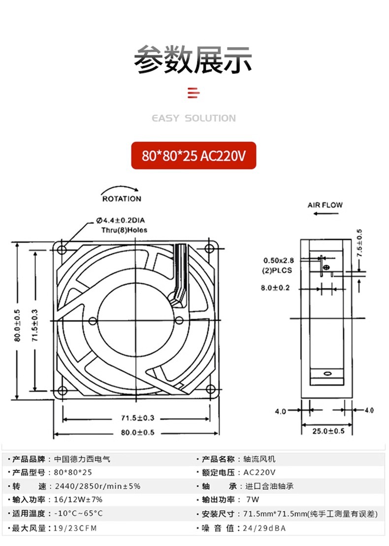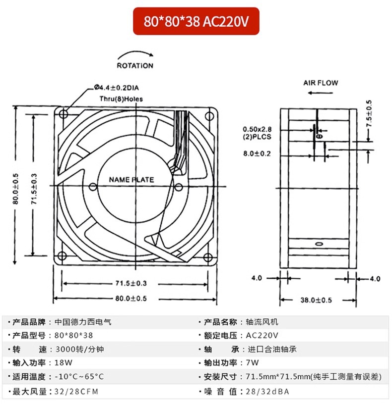 配电箱散热排风扇 80*80*38 轴流风机 德力西电气