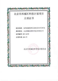 2011年末,北京精微高博科学技术有限公司再次得到政府的支持,喜获西城区科委颁发的“西城区科技计划项目立项证书”。公司自主研发的比表面及孔径分析仪具有独特的创新性,多项技术在国内同行业产品中处于领先地位,总体指标达到国际先进水平。