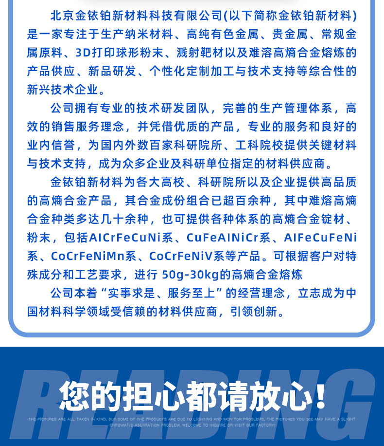 难熔合金铸锭、纳米材料、常规金属颗粒、粉末、3D打印球形粉末