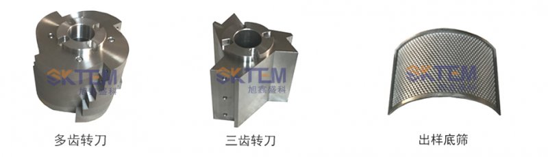 样品通过防反溅的进样料斗进入研磨室内,通过旋转的转刀与固定的切割棱之间的剪切切割作用,对样品进行切割粉碎。样品的出样尺寸取决于底筛孔径,多种规格的底筛满足各种样品的需求。