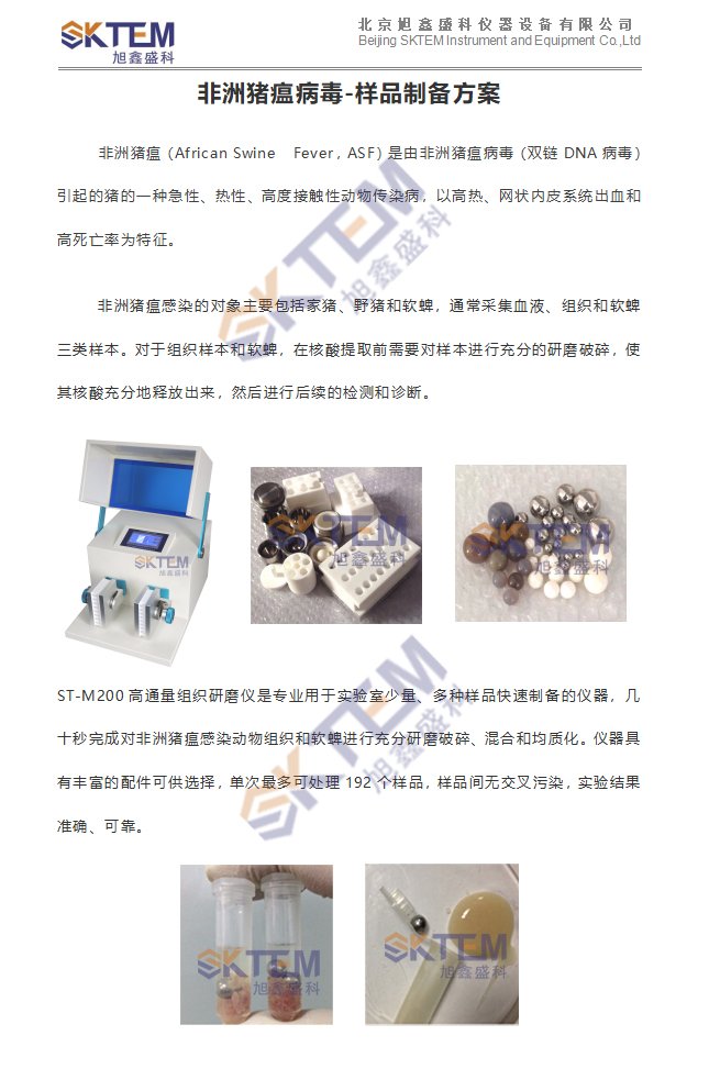 非洲猪瘟病毒来袭!北京旭鑫盛科ST-M200组织研磨仪助力于迫在眉睫的检验检疫工作!