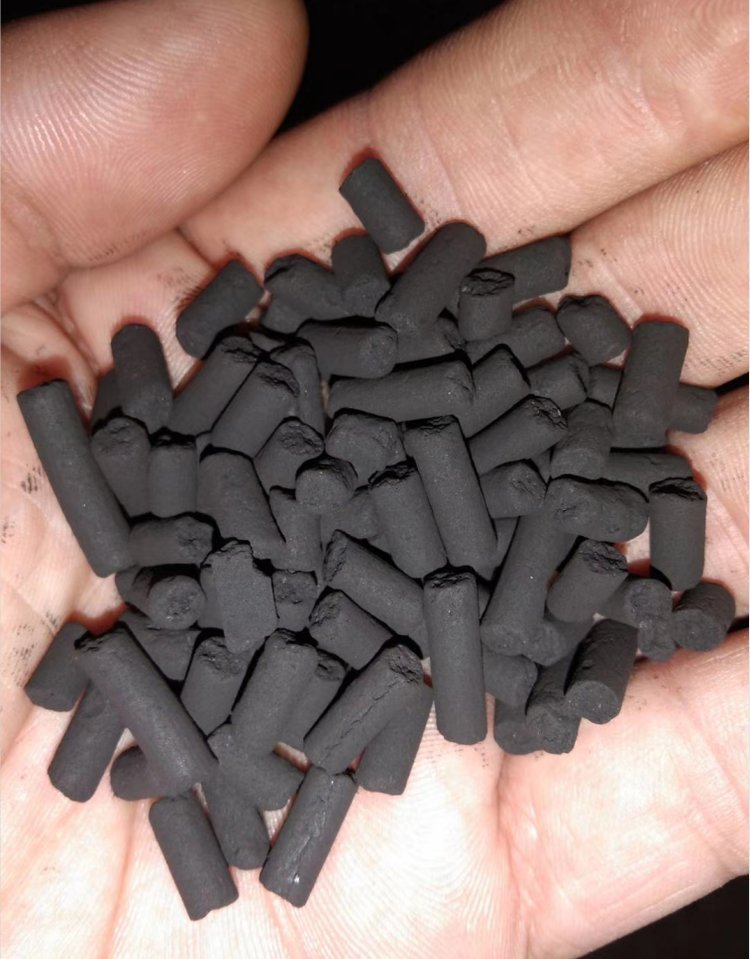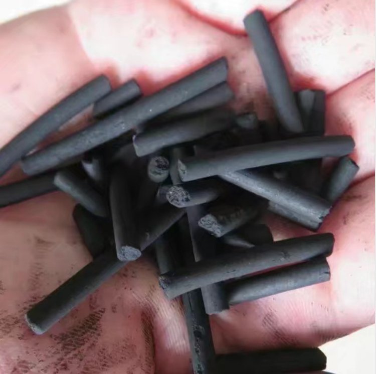 煤质黑色圆柱状活性炭,不定形煤质颗粒活性炭,又称破炭。圆柱形活性炭又称柱状活性炭炭,一般由粉状原料和粘结剂经混捏、挤压成型再经炭化、活化等工序制成。也可以用粉状活性炭加粘结剂挤压成型。具有发达的孔隙结构,良好的吸附性能,机械强度高,易反复再生,造价低等特点;用于有毒气体的净化,废气处理,工业和生活用水的净化处理,溶剂回收等方面。