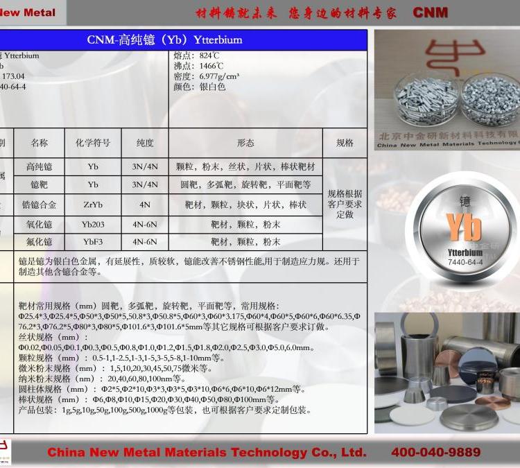 中金研品牌高纯度镱片 Yb 进口原料金属片状物冶金用材
