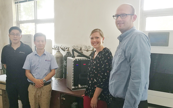 从左至右:英福康中国华北区经理,贝士德仪器总工,英福康美国工厂传感器部门经理、质谱部门经理