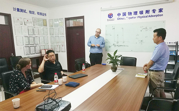 从左至右:英福康中国华北区经理,贝士德仪器总工,英福康美国工厂传感器部门经理、质谱部门经理