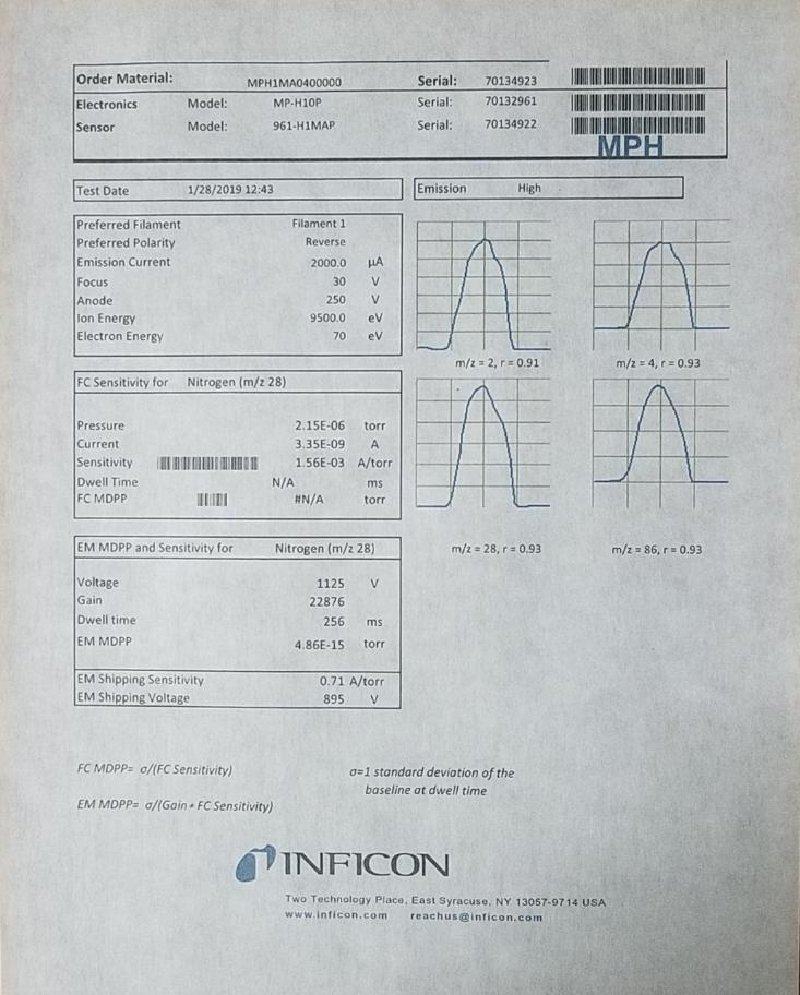 | ◆ 四极质谱:德国英福康(INFICON)在线质谱(产地:美国,提供原产地证书及原厂校准测试证书); ◆ 质量数:默认1-100amu;选配1-200amu或1-300amu; ◆ 灯丝:镀铱灯丝,2套,一用一备,软件切换; ◆ 分辨率:优于0.5ppm(40amu); ◆ 扫描速度:**可达1.8毫秒/amu,扫描步阶0.1amu; ◆ *小可检测分压:2E-15Torr (4s停留时间) ◆ 气体采样流量:默认可低达2SCCM的微流量采样,*低可至0.2SCCM的超微采样量;(相比其它国际品牌,完全避免了大流量采样吸入空气的弊端) ◆ 响应速度:可在低达<2SCCM的微流量采样量下,仍然保持超快速的响应,响应时间<1秒;(无需大流量采样来提高响应速度) ◆ 分流系统:具有,高精度分流系统是快速灵敏响应速度的保证。 ◆ 软离子化功能:离子源电子能量软件可调,提供更高分辨率。 ◆ 涡轮分子泵:爱德华,抽速85L/s,100KRPM,极限真空1*10E-12mbar; ◆ 干泵:涡旋干泵,抽速20L/S,极限真空1*10E-1mbar; ◆ 质谱腔体:一体式腔体,非焊接式,含加热烘烤,烘烤温度150℃; ◆ 进样接口:1.2米内洁净钝化不锈钢毛细管进样装置,防冷凝防堵塞保护结构;采样压力默认100±10kpa,负压或高压采样可定制; ◆ 软件分析系统:德国英福康(INFICON),英文;通讯接口TCP/IP。 ◆ 规格:H510mm*L520mm*W225mm,Weight30kg,高集成度。 | ![]() |