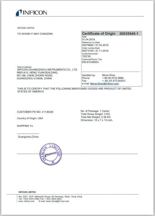 四极质谱:德国英福康(INFICON)在线质谱(产地:美国,提供原产地证书及原厂校准测试证书);