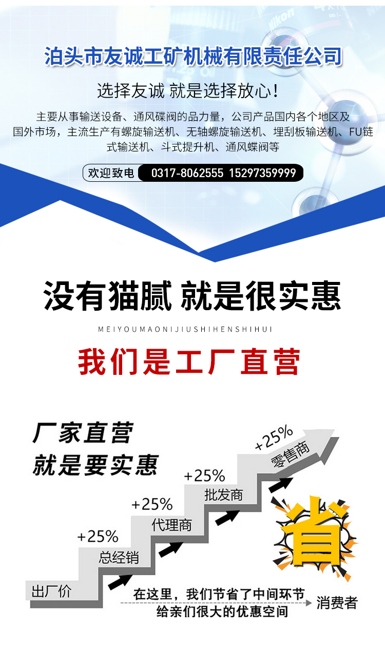 螺旋输送机、斗式提升机、刮板输送机、粉尘加湿机、通风蝶阀、无轴螺旋输送机、管式螺旋输送机、插板阀、星型卸料器