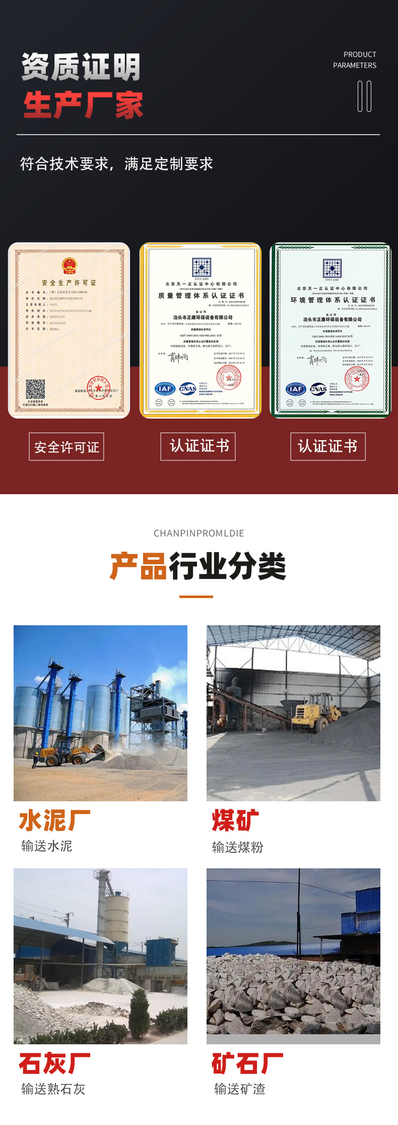 卸料阀、搅拌机、卸料器、拉链机、圆板阀、百叶阀、装车机、输送机、分料器、螺旋机、通风蝶阀、工业阀门、工业蝶阀、高温蝶阀、电动蝶阀、输送设备、链式刮料机、水泥给料机、砂浆加湿机、布袋除尘器、脱硫除尘器、催化燃烧设备、模锻链刮板机、耐磨陶瓷叶片、钩子链输灰机