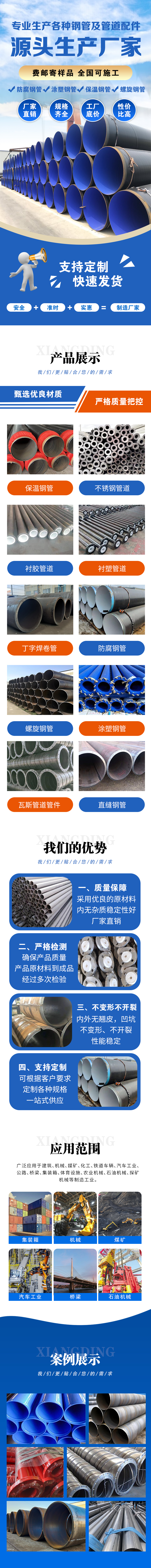 发泡管、道支架、回转盖、空心管、钢护筒、椭圆管、兰弯头、滤水管、缝钢管、埋钢管、低温钢、衬塑管、拉丝管、三通管、线缆管、抛光管、固定节、耐候管、法兰连、异径管、防腐管、法兰板、支架管、处理管、排水管